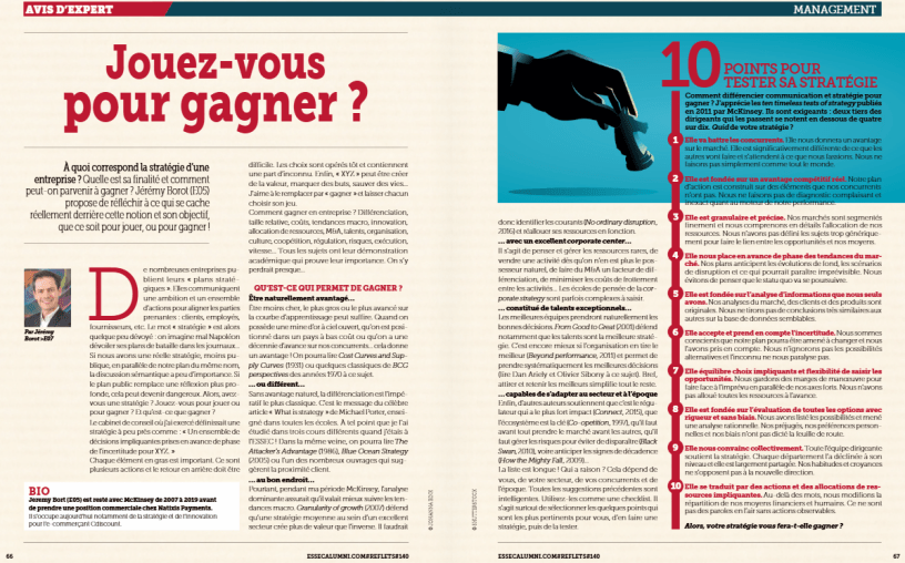 Comment différencier communication et stratégie pour gagner ? J’apprécie les ten timeless tests of strategy publiés en 2011 par McKinsey. Ils sont exigeants : deux tiers des dirigeants qui les passent se notent en dessous de quatre sur dix. Quid de votre stratégie ?
