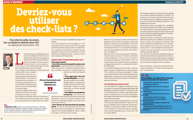 Reflets business, le magazine des alumni ESSEC, reprend dans son numéro 143 de juin-juillet 2022 la profession de foi des éditions Curatus autour de l’importance et de l’utilisation des checklists.