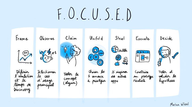 La méthode, FOCUSED pour Frame-Observe-Claim-Unfold-Steal-Execute-Decide, suit les étapes attendues par un bon carcan de résolution de problème complexe. Sans être révolutionnaire, elle est donc parfaitement adaptée au sujet. Au sein de chaque étape, les Rémi et Tristan dispensent 15 ans d’expérience au travers de méthodologies applicables, d’idées activités et d’illustrations de produits finis. Un grand merci ! Quelle générosité de partager tant d’intelligence accumulée pour un prix si modique. A tel point que l’ouvrage pourrait trouver sa place dans la prochaine édition du guide Curatus (Le guide des livres business).